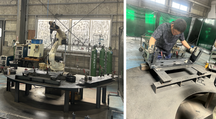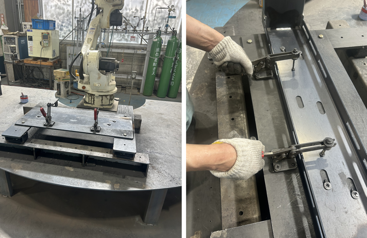 *多数ロットの溶接時、製品に合した治具を作りボタン一つで熟練工と同等の溶接が可能