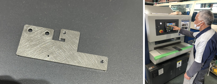 複合機のプレスにて加工。高さ(深さ)も調整できるため、加工忘れ、常にばらつきのない加工を実現いたします。